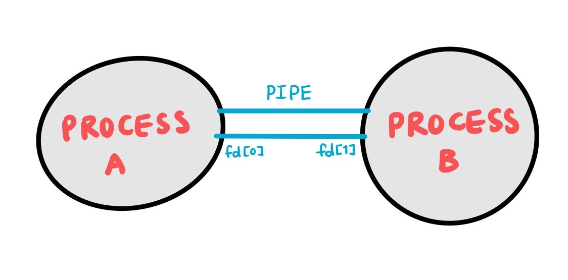 위의 그림을 보면 독자적인 여러 프로세스가 있고 메모리가 각각 할당되어 있기 때문에, 여러 프로세스가 서로 교류를 하는 것은 컴퓨터적으로(?)는 불가능하다. 하지만 이 pipe 함수를 사용하면 통로를 열어줘 부모와 자식이 서로 데이터를 주고받을 수 있다!