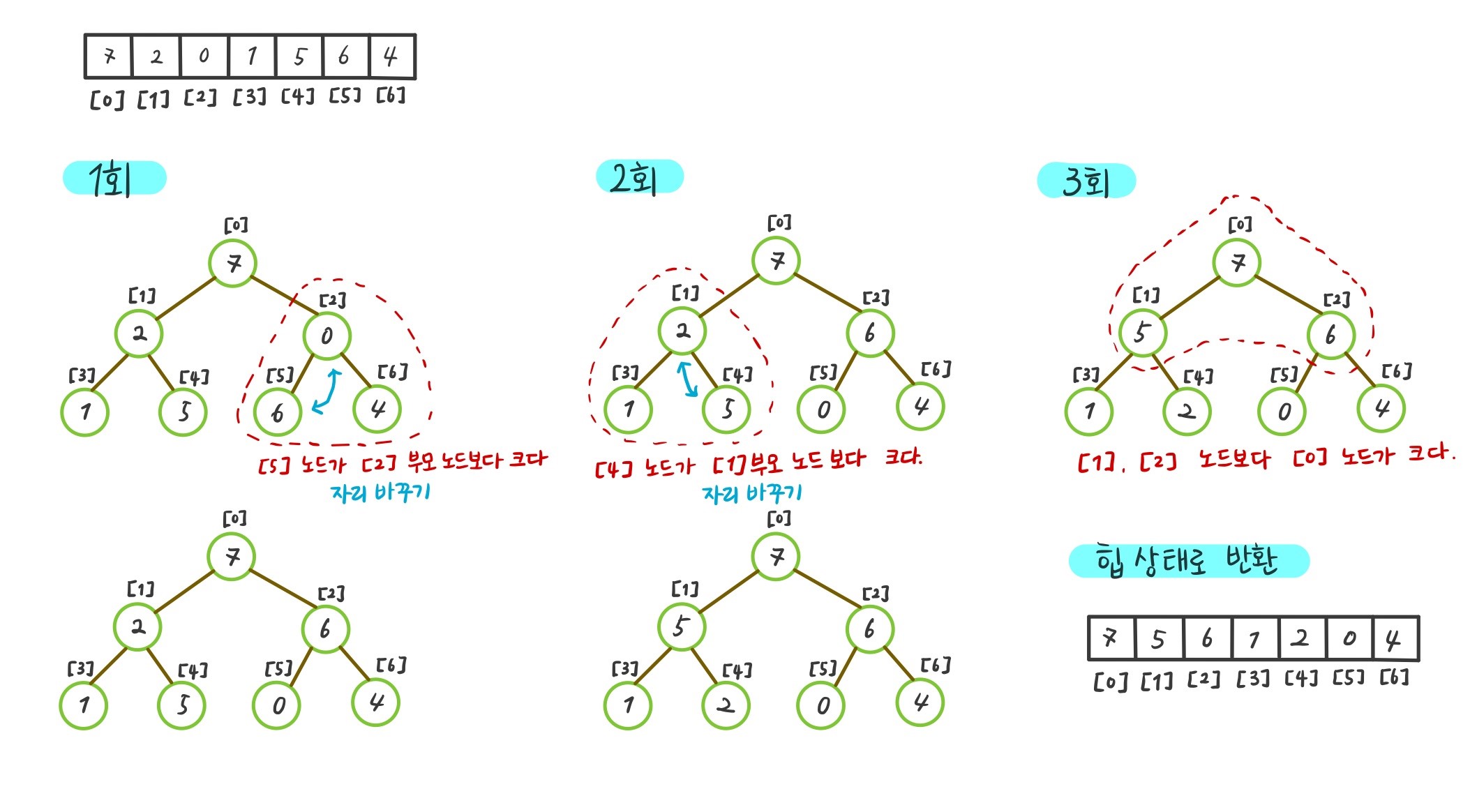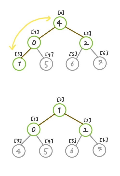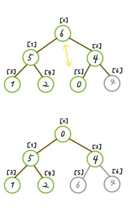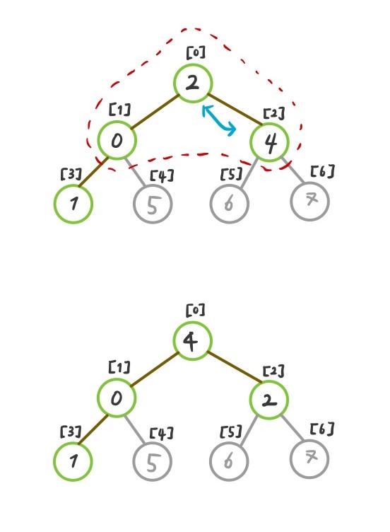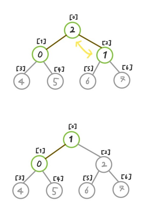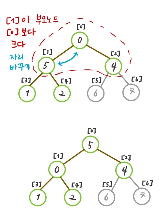 if(arr[root] < arr[child]) //만약에 루트노드가 자식노드보다 작다면 바꿔주기