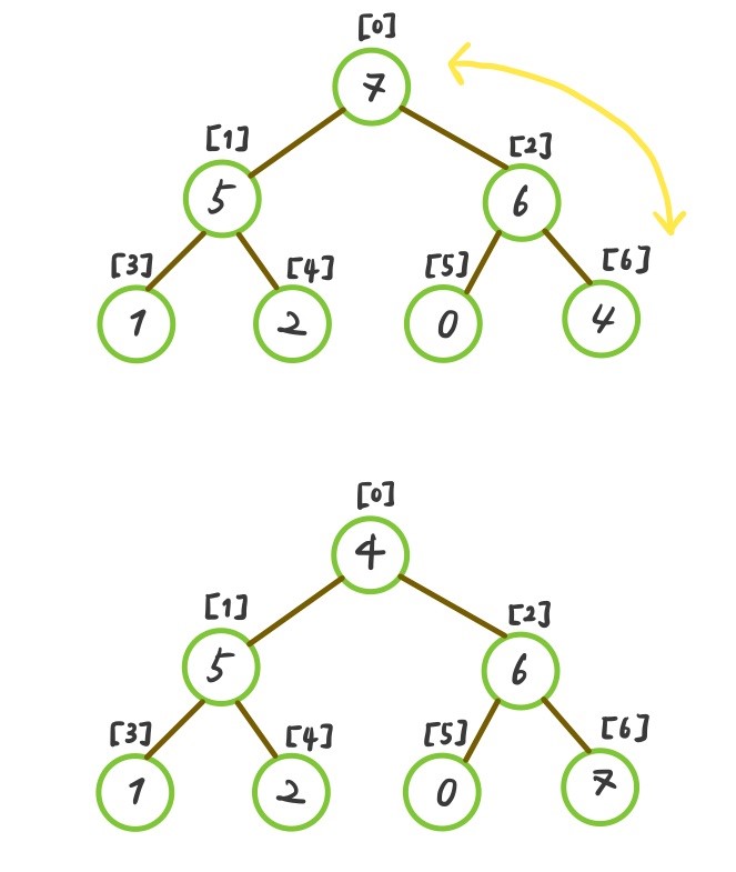 void swap_root(int *arr, int size) //루트노드와 마지막 노드 스왑하기