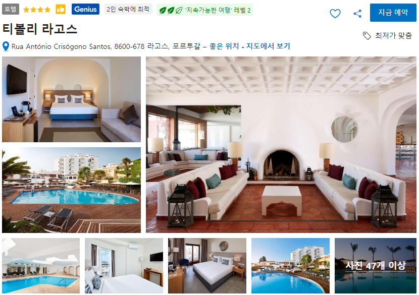 거의 3시간에 거쳐서 고민한 끝에 카사 망이 바로 옆에 가성비 좋은 4성급 호텔을 발견했고, 조식포함 142유로에 티볼리 라고스로 예약했다 🤩