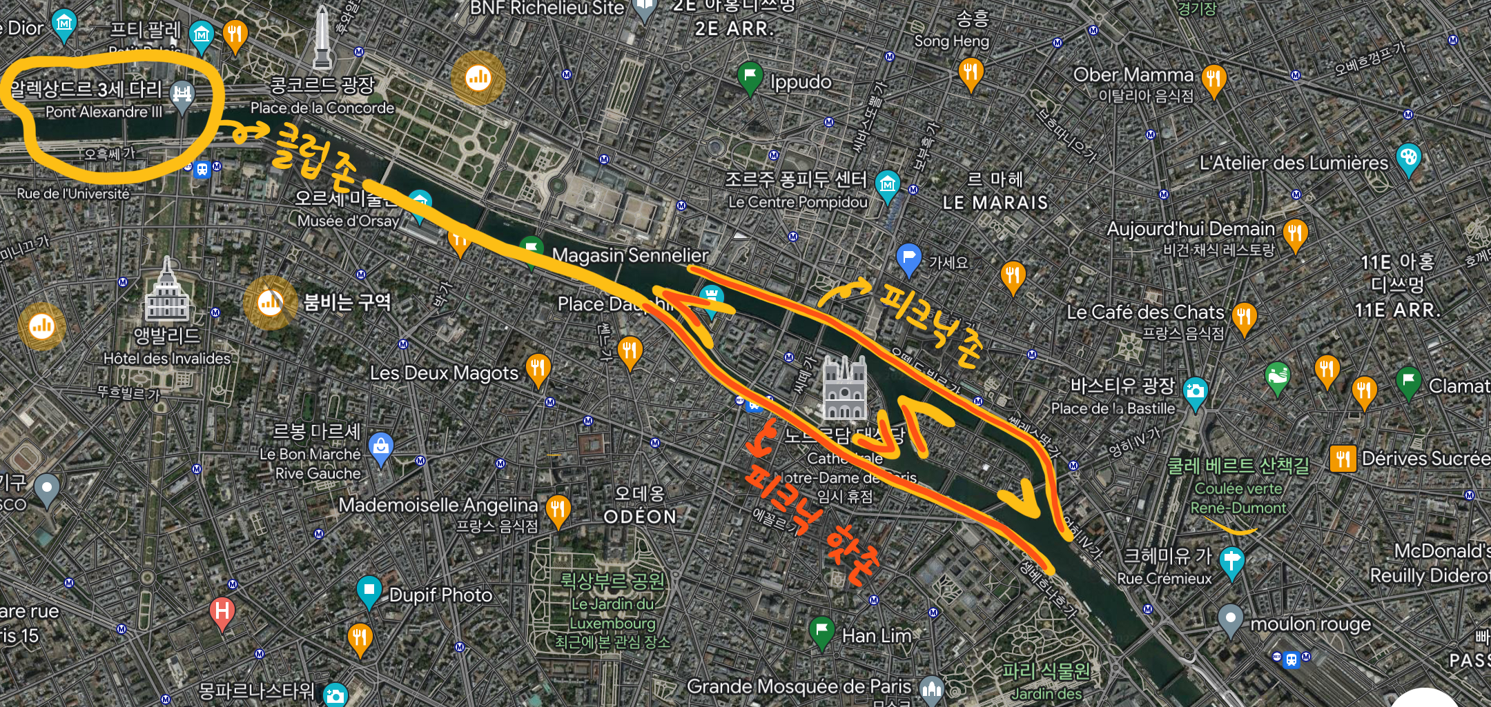 📍센느강변은 아래의 지도를 확인해서 산책하다 맘에 드는 곳에 앉아 보자!
