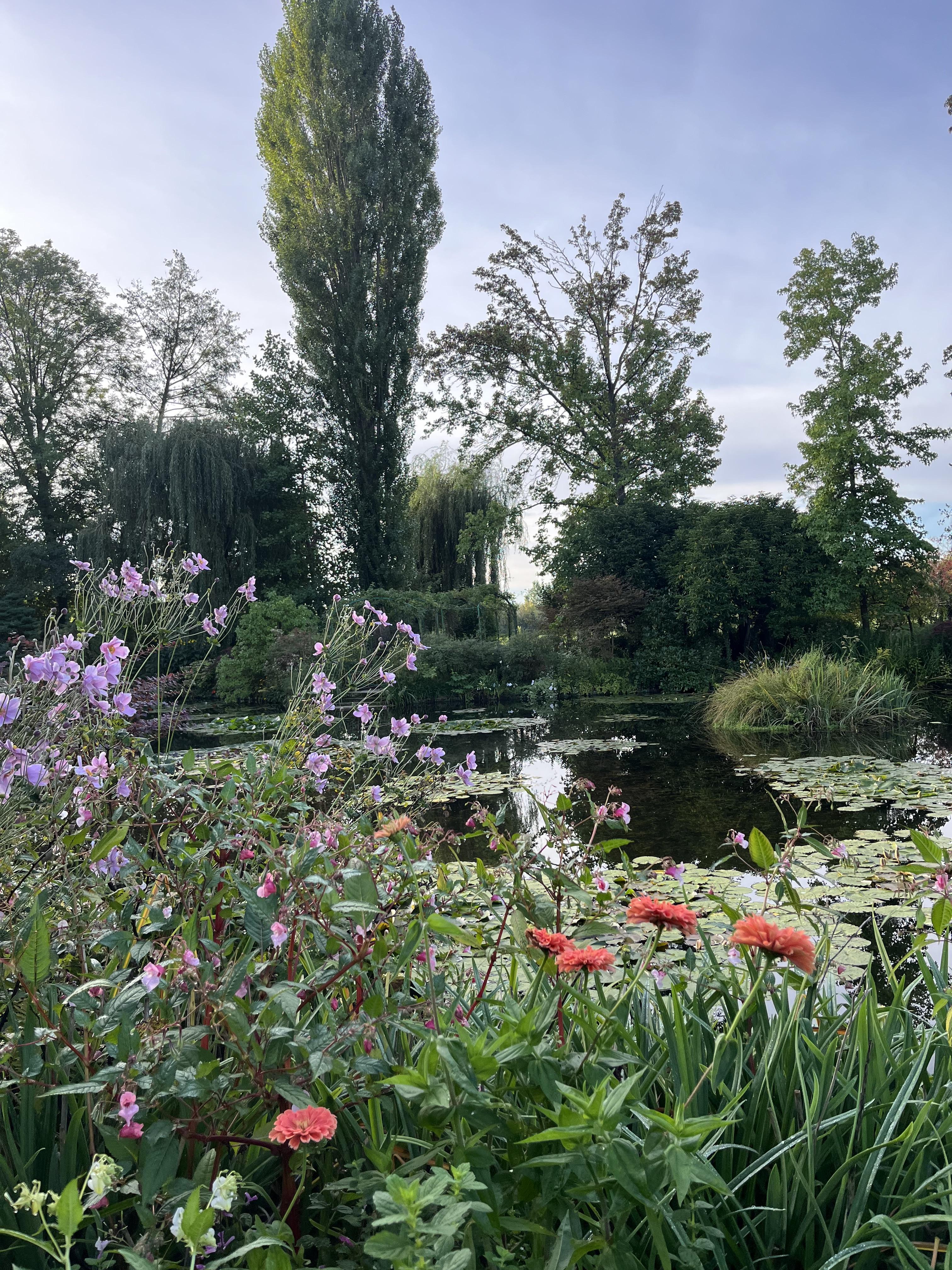 지난 8월의 아침은 쌀쌀했다. 세일기간 때 구매한 몽클레어 패딩을 혹시 몰라 가져오신 여행자분이 있었는데 하루종일 입고 투어를 하셨다..😂 하지만 24년도는 또 다를 수 있으니 꼭 가이드 선생님의 공지에 따라 옷을 가져와야 한다! 8월의 지베르니는 꽃보다도 나무들이 울창하고 푸르고 푸르르고 푸르다. 하지만 모네가 그렸던 수련연작의 수련을 실제로 볼 수 있으니 허탕은 아니다. 모네의 수련 중 여름 그림이 있는데 다리도 초록 나무에 덮이고 모든 그림이 푸릇푸릇하다. 하지만 8월에는 바캉스 시즌에 엄청난 인파가 몰린다. 진짜 사진마다 사람이 안 걸리는 게 없을 정도. 미리 마음을 단단히 먹고 가자..!