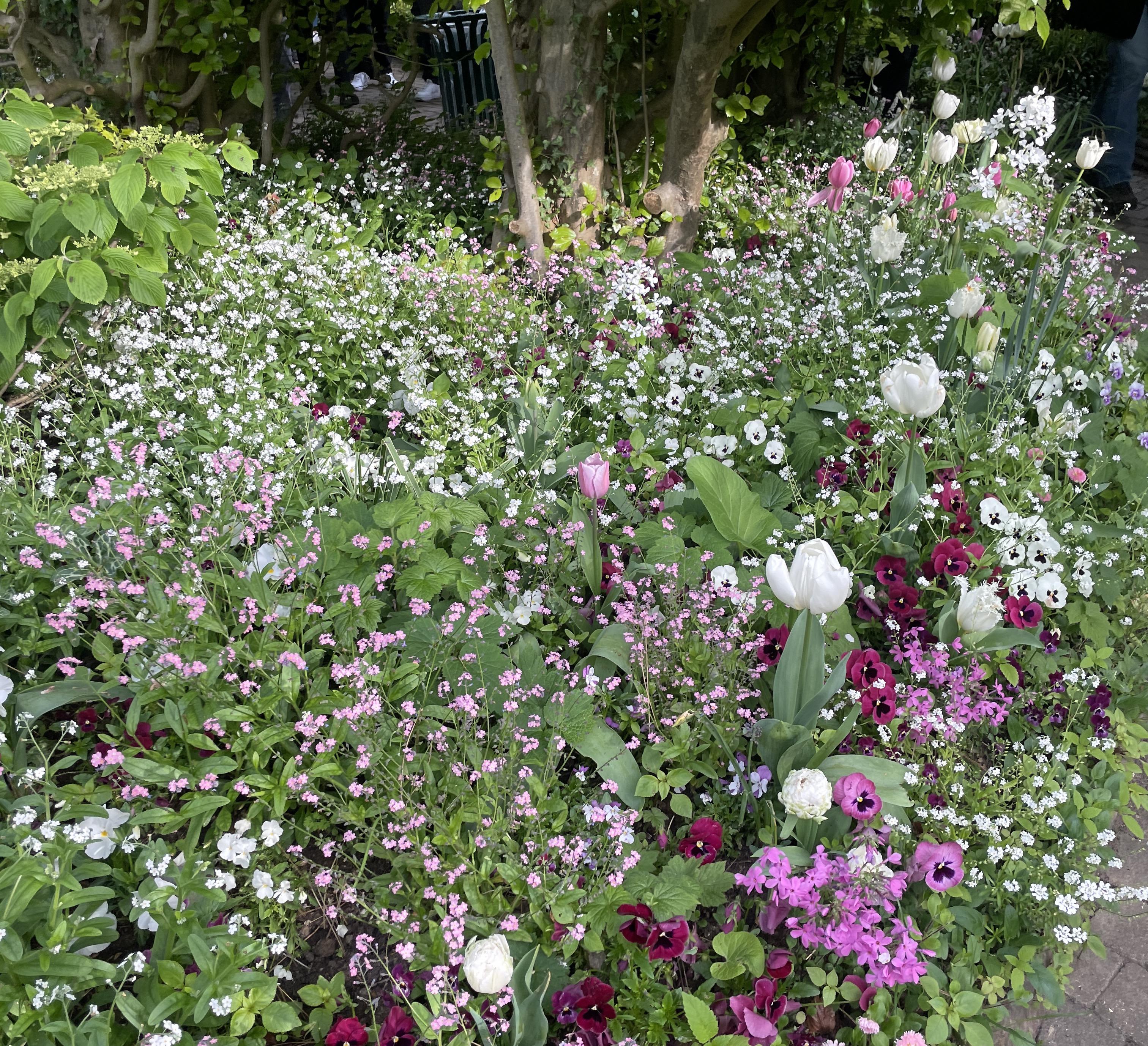 오브리에뜨, 관상마늘(월말), 진달래(월말), 벚나무, 봄 클레마티스(월말), 라부넘, 프리틸라리, 월플라워(2주차), 히아신스, 교황의 동전, 물망초, 수선화, 데이지, 다이어스 파스텔(2주차), 팬지와 비올라 코르누타, 사과나무(2주차), 프림로즈, 실렌(월말), 위성류(월말), 튤립