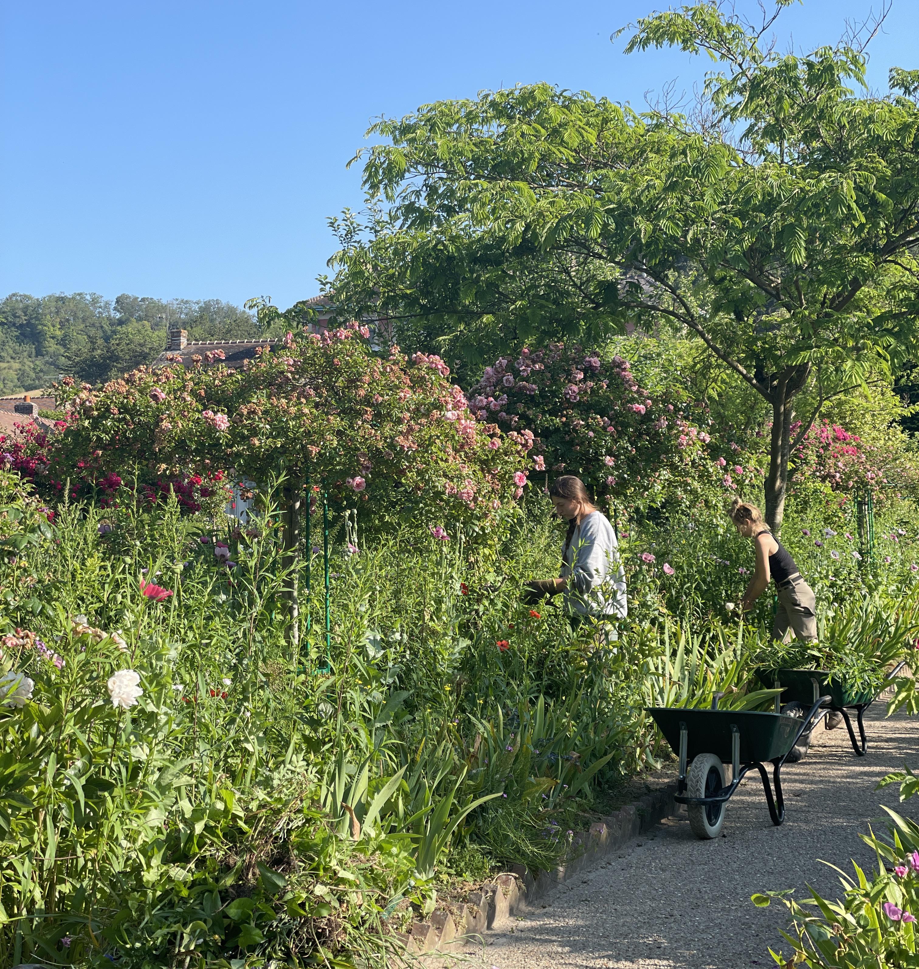 6월 초도 춥다! 따뜻하게 입고 오시구용3.. 5월 중순부터 해가 길어지면서 아침이 한 6시 즈음 시작된다. 그래서 아침 안개는 이미 다 겉 치고 맑고 싱그러운 아침 꽃들을 즐길 수 있다. 왜 모네가 이렇게 정원을 구성했고, 이 공간에서 어떤 삶을 살았는지를 여기서 소개하고 싶지만 투어에서 한 시간 반동안 자세히 이야기하고 있기 때문에... 아래의 사진을 보면 6월부터 뭔가 초록색이 더 많이 보이기 시작한다.... 이때도 꽃이 있긴 하지만 이제 초록색이 점점 많이 보이기 시작할 것이다. 이때도 가이드한테 꽃이 어디가 있냐고 뭐라들 하기 시작하심😂 그래도 나에겐 너무 예쁜 지베르니.. 아 언젠가 한 화가 여행자분께 이렇게 말씀하셨다. "나도 이런데 살았으면 모네처럼 됐것네!"