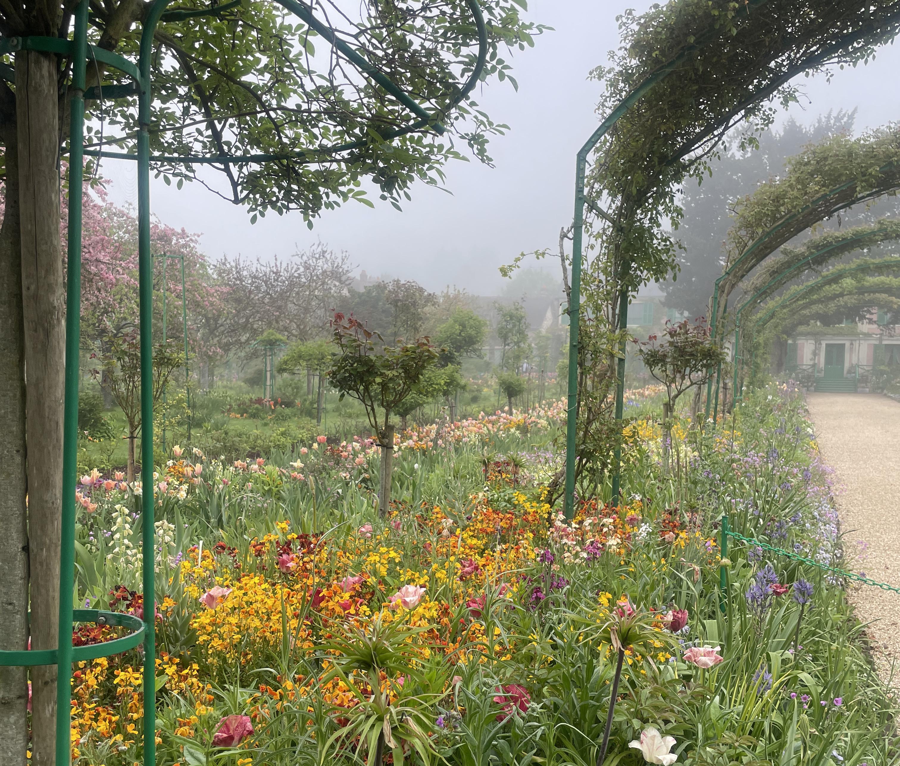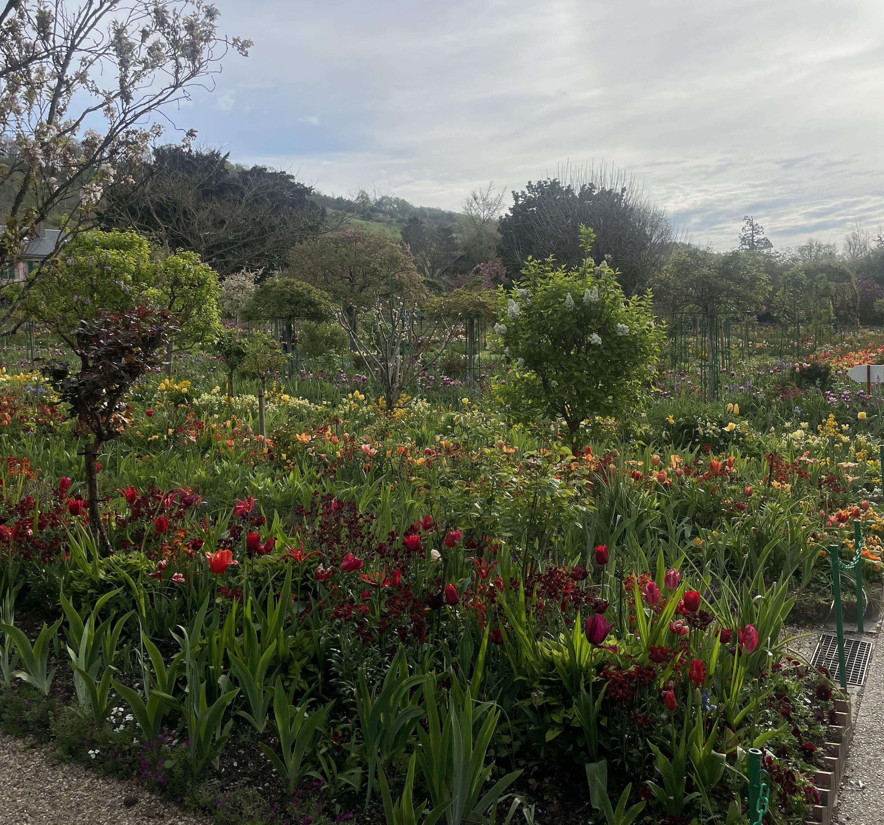 지베르니는 날씨가 흐려도, 비가 와도, 내 눈엔 너무 아름다워 보인다. 비가 오면 비가 오는 대로 식물도 두배로 싱그럽고, 모네가 이곳을 걸었을 것을 생각하니 운치가 2배이다. 유독 자주 흐린 지베르니. 모네가 이곳에서 살면서 반 이상을 겪은 날씨이니, 모네가 보았던 정원의 빛을 여러분들도 보고 계신 것이라. 그렇지만,, 대부분의 여행객들은 꽃도 좀 많이 피어있고 해도 쨍쨍한 날을 원할 것이다. 코로나 이후로 지베르니의 3계절을 2년 동안 보았다. 22년과 23년의 날씨가 너무 달라서, 이 포스팅을 기획하면서 요걸 어떻게 설명해야 하나,, 고민하다가 결국 23년 기준으로 포스팅을 하는 게 맞다는 판단이 들었다. 아래부터는 내가 투어를 하면서 실제로 찍은 사진과 영상들이다. 그리고 지베르니 공식 홈페이지에 명시되어 있는 월별 꽃 이름도 올려본다. 그럼 고고고!